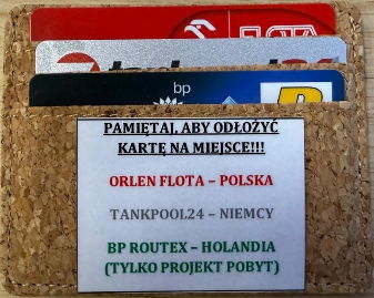 W busach (w schowkach przy okularach przeciwsłonecznych) znajduje się etui z kartami paliwowymi wraz z opisem krajów, do których są one przypisane.